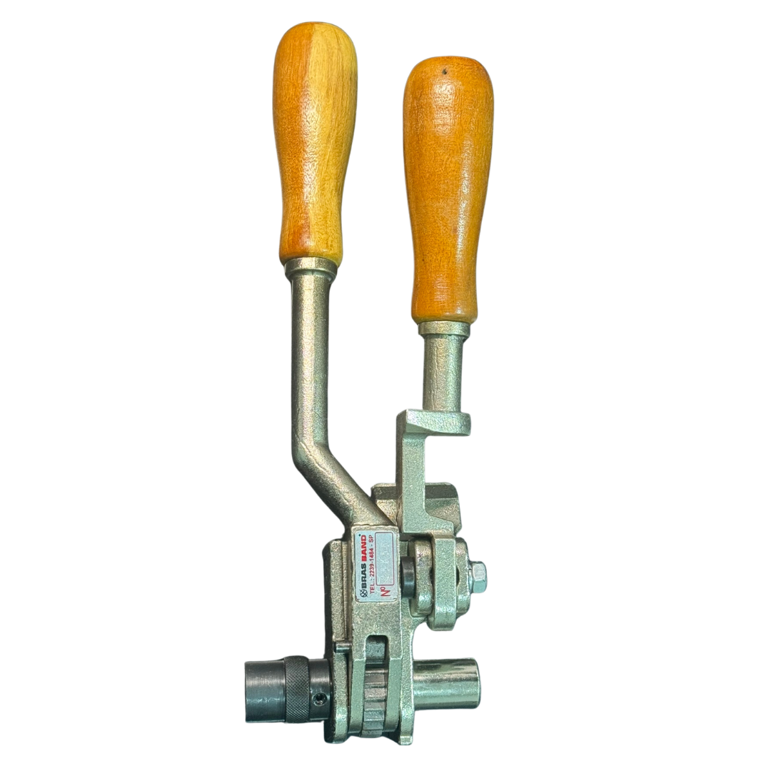 da maioria dos aparelhos de arquear, possibilita esticar e cortar fitas de aço sobre