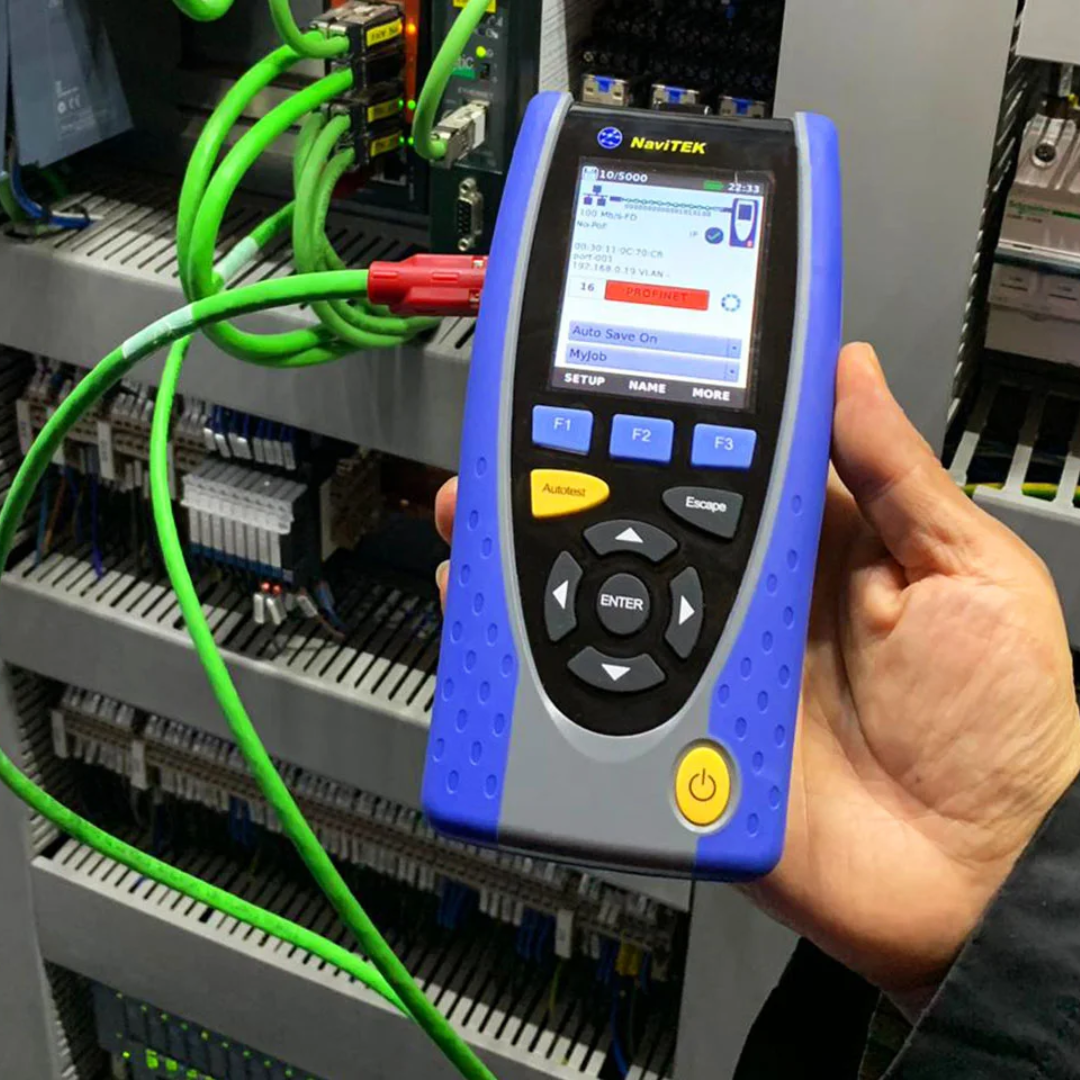 O NaviTEK IE é um testador para comissionamento, manutenção preventiva e solução de problemas de redes PROFINET Industrial Ethernet, além de redes Ethernet IP padrão.