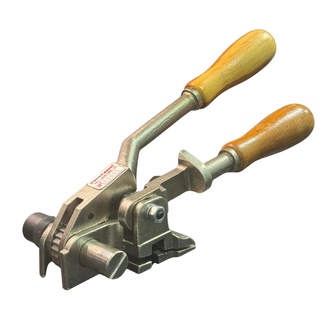 Ferramenta para aperto e corte de fitas de aço inoxidável de até 20mm de largura x 1,0mm de espessura, para confecção de abraçadeitas em postes ou similares.